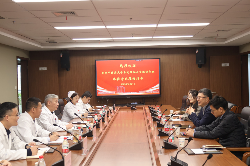 10月21日下午,养老服务与管理研究院常务副院长田侃教授率队赴江苏省中医院江宁院区访问交流。江苏省中医院江宁院区方舸院长及各部门负责同志参加座谈。