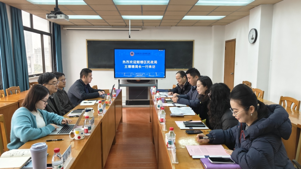 3月3日时逢农历元宵佳节,南京市鼓楼区民政局副局长王珊珊一行到访我院,我院常务副院长田侃、院长助理喻小勇及部分教师参加座谈。