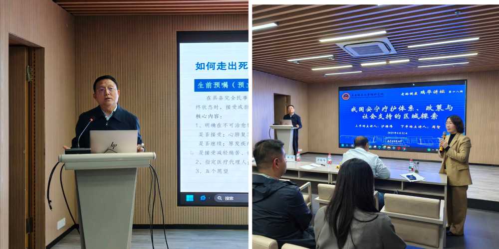 4月22日下午,我院在图书馆514时珍学术报告厅举办了“我国安宁疗护体系、政策与社会支持的区域探索”主题学术讲坛。活动特邀江苏省社会福利协会会长、我院执行院长沙维伟,南京明基医院缓和医学科执行主任周智担任主讲嘉宾。活动由我院田侃教授、喻小勇副教授分别主持,部分在校师生参与活动。